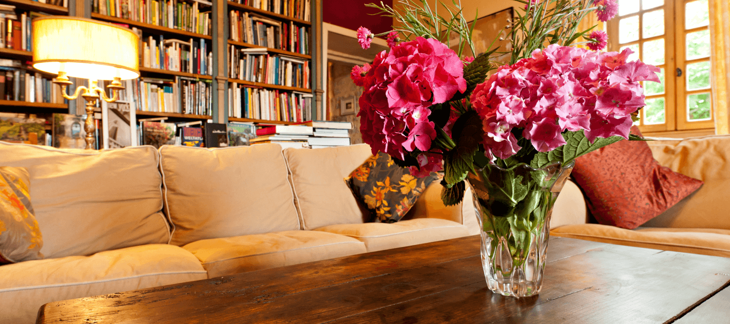 Im Haupthaus bieten wir unseren Gästen zwei Gästezimmer an. Hier können Sie sich so individuell untergebracht fühlen wie bei Freunden. Die geschmackvoll und individuell eingerichteten Zimmer wurden mit viel Liebe zum Detail renoviert. Im Salon mit einem offenen Kamin, findet jeder Gast in der großen Bibliothek seine Urlaubslektüre.
